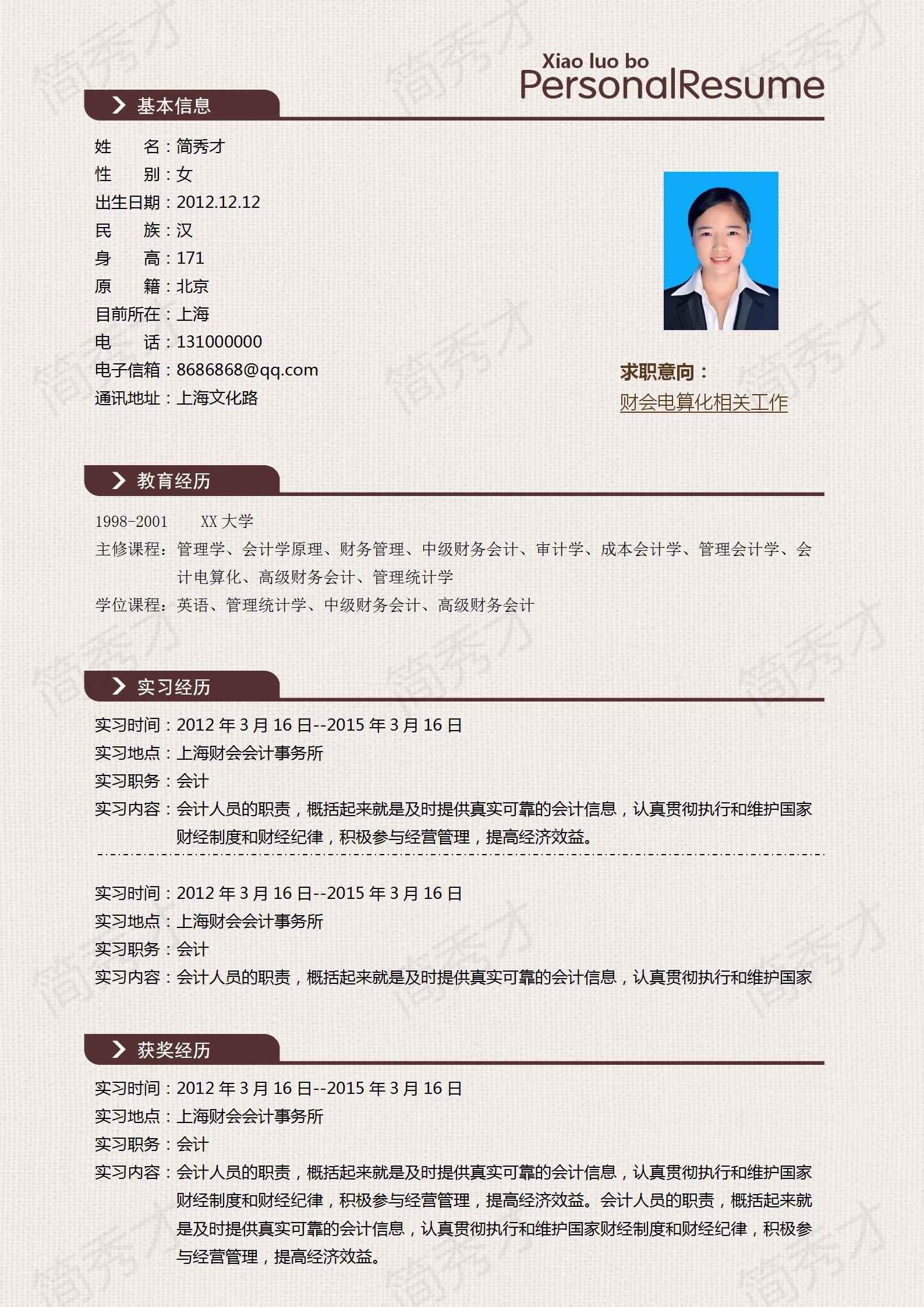 高级财务类简历模板,财务个人简历模板下载,财务管理个人简历模板