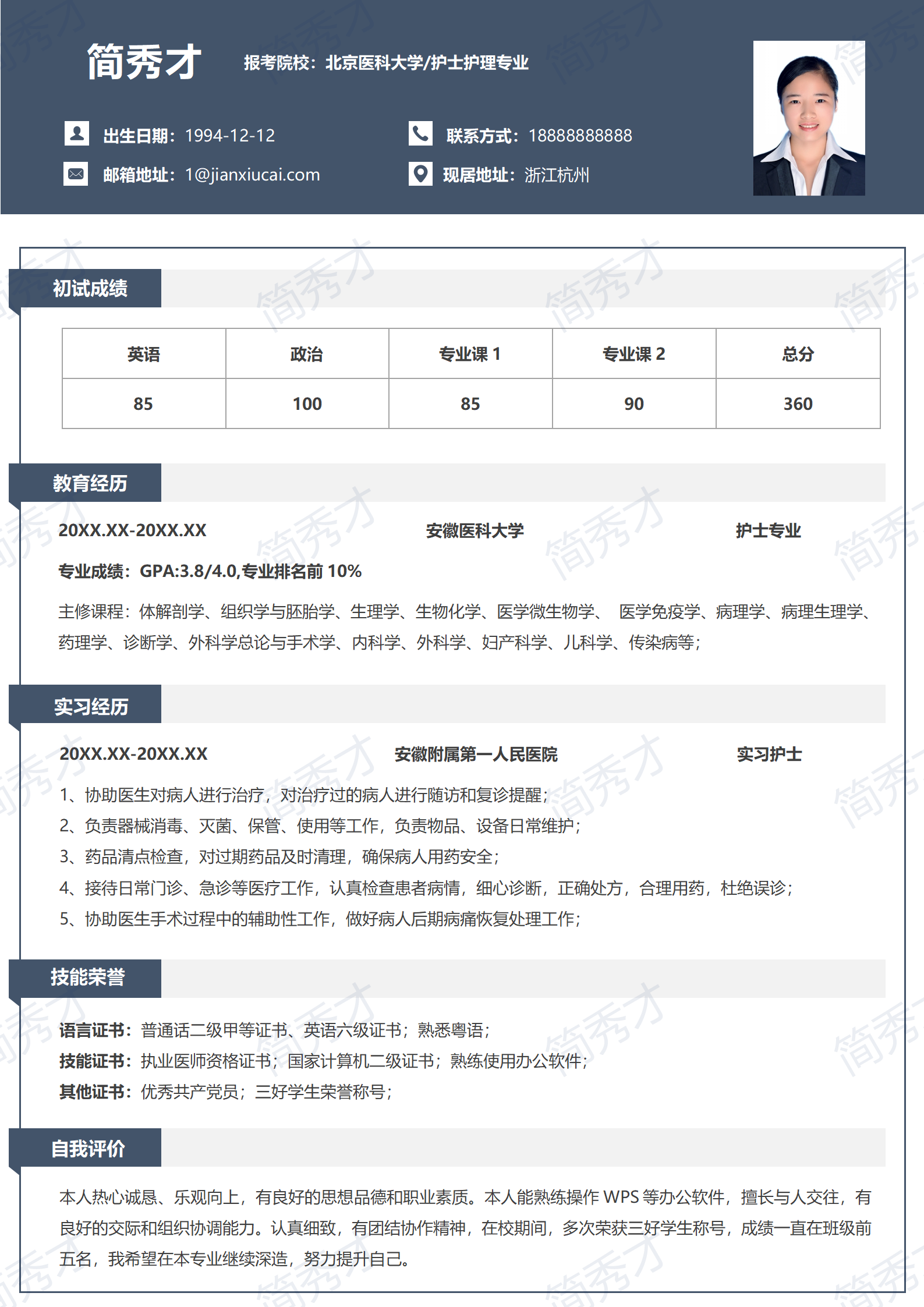 >单页护士护理研究生复试面试简历模板28