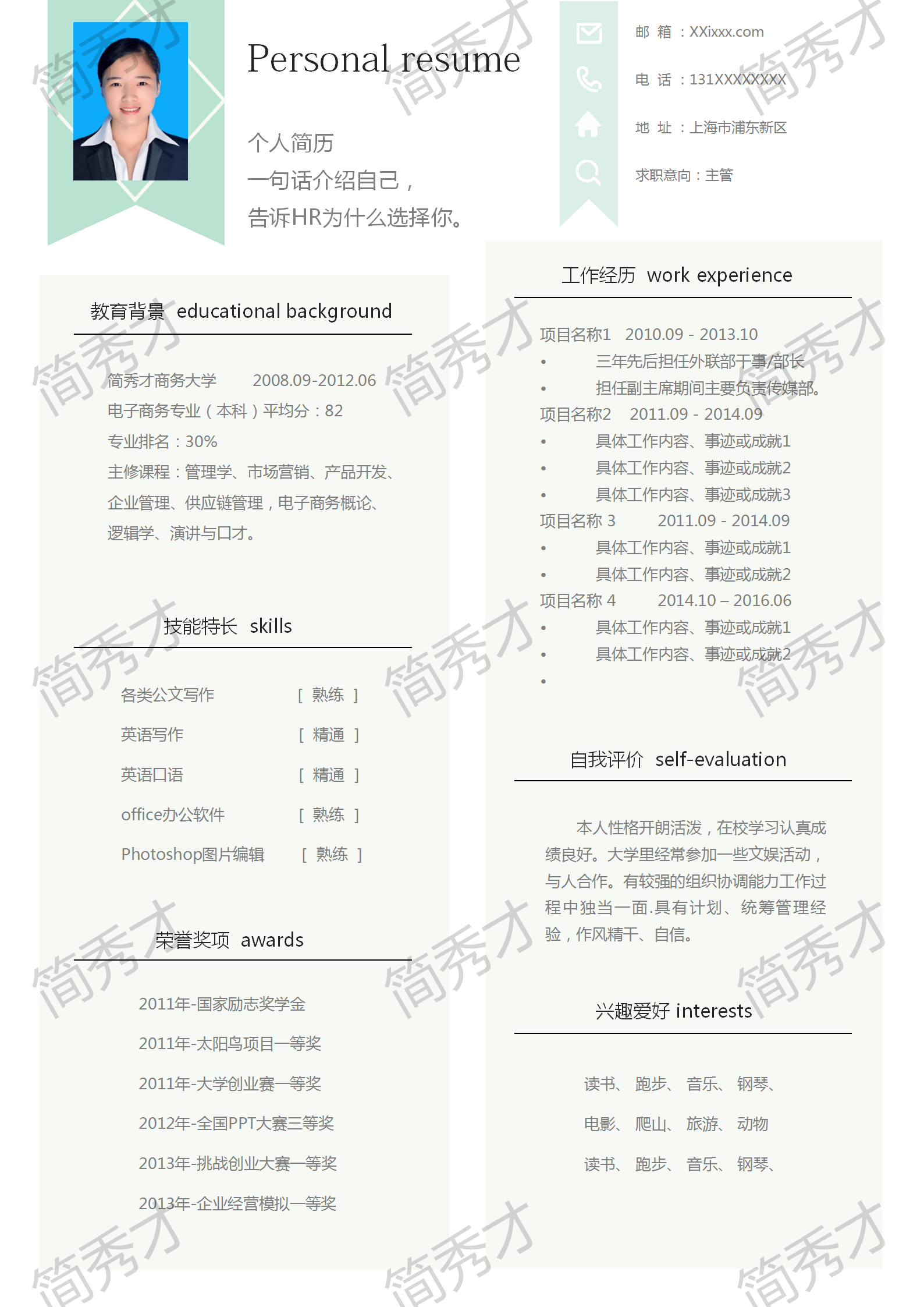 大学应届毕业生简历模板word下载,此模板适合大学应届毕业生实习使用的简历模板,样式设计独特鲜明。