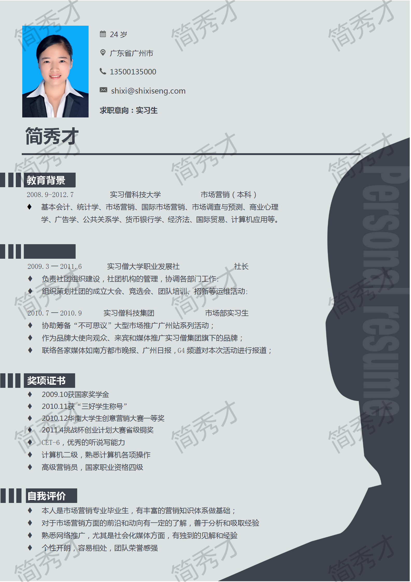 秋招简历模板范文,模板格式为word文档格式, 方便编辑修改。