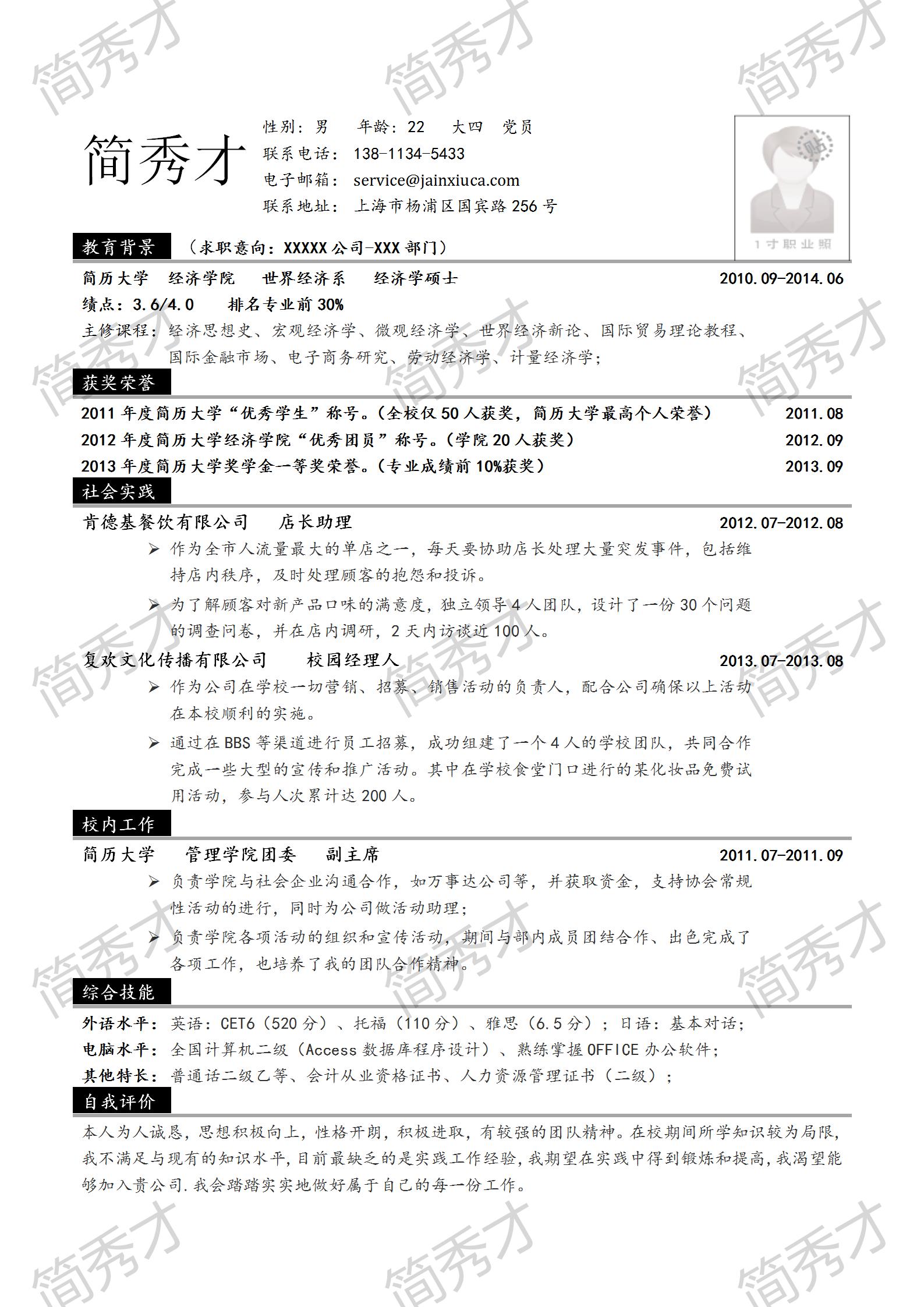 电子简历模板在线填写