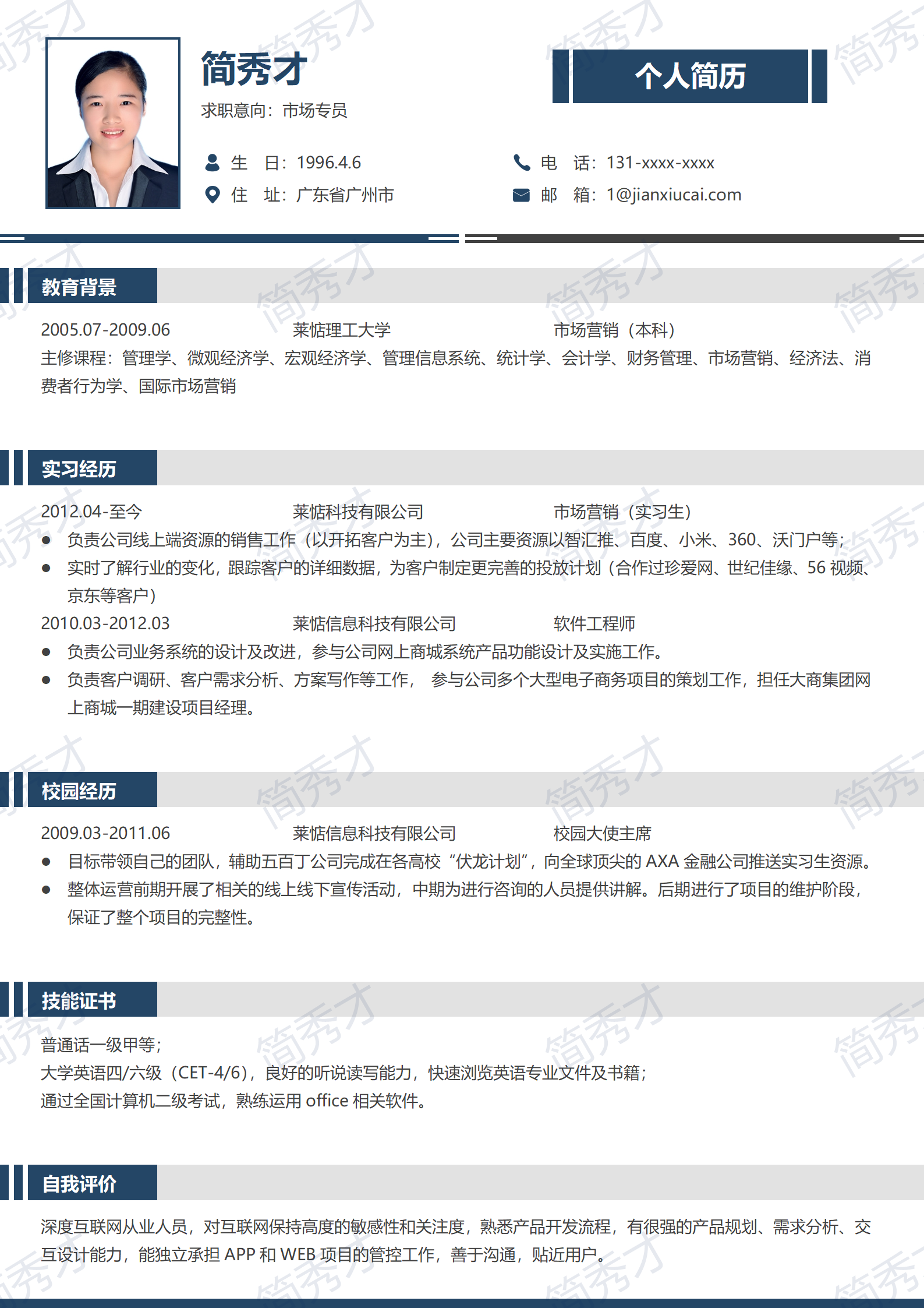 首页>模板下载>单页人事行政财务出纳秘书文员简历模板23