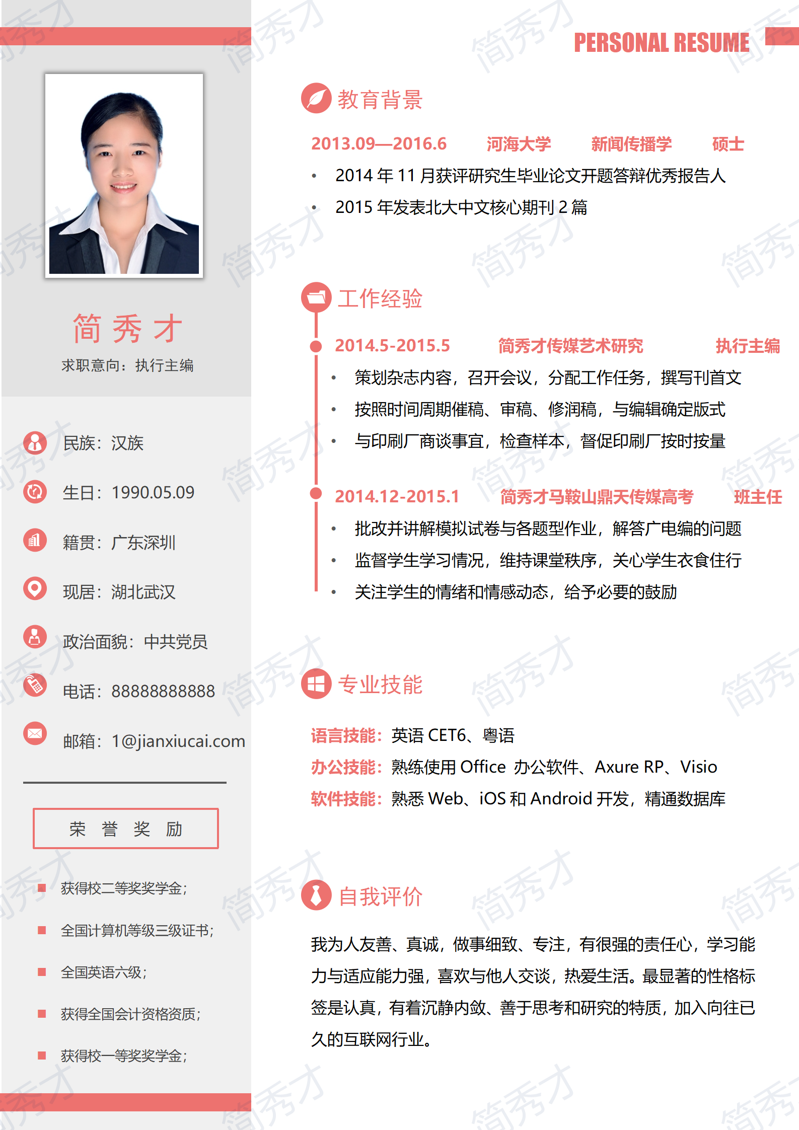 首页>模板下载>单页新媒体运营抖音快手短视频运营简历模板13